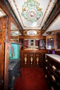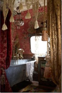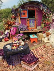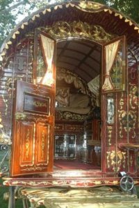 Az angliai Gypsy lakókocsik nem csak a dekorálásról szólnak, ez egyfajta különleges életforma.A stílusa maga az eklektika megtalálható benne marokkói, indiai, hippi, vintage ezáltal egy merész szabadlelkű megjelenést hozz létre.Jellemző rá az erős színek, gyakori díszes roma motívumok és fafaragások amiket arany színnel díszítettek!Elrendezésében és kialakításában jellemző közös pont az elején elhelyezkedő ajtó és a baloldalon elhelyezett öntöttvas kályha kéménnyel.A kocsi belsejére jellemző a beépített ülések, szekrények, a karaván hátsó részében található ágy.